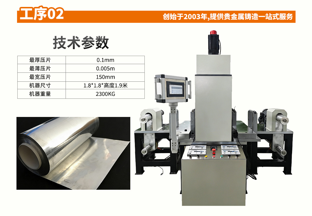 这套设备是金/银箔、超薄金银片生产专用成套设备,可将金、银、K 金等贵金属一次性压延至超薄箔材,自动化程度高、成品镜面无划痕,是首饰、工艺品、金箔装饰行业核心生产设备。