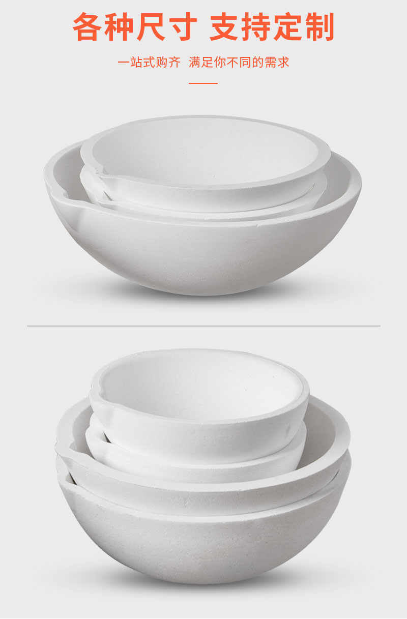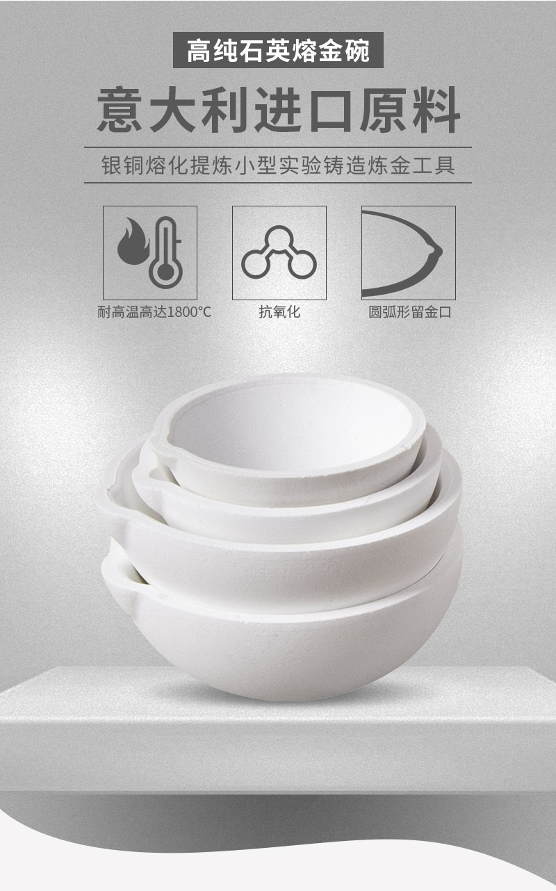 以精选熔融石英为主要原料,用现代陶瓷技术加工制成,主要用于铂金、黄金及其它高温合金的熔化,产品纯度高,耐侵蚀,主成份SiO2含量不小于99.99%,杂质(K2O、Na2O、Fe2O3)含量不大于0.10%,强度高,常温耐压强度≥70MPa,热震性高。