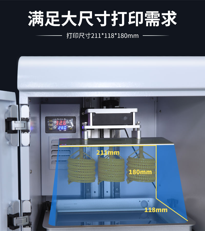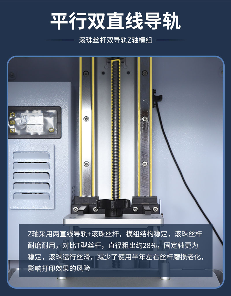 量产稳定:Z 轴强化双导轨 + 滚珠丝杆设计,机身结构稳固,长时间打印尺寸漂移极小;