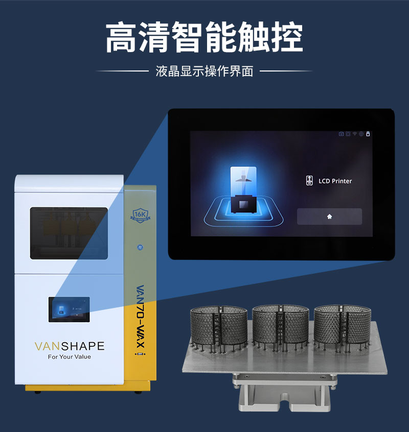 专为高品质珠宝生产而设计的16K超清分辨率LCD 3D打印机,精确度高,打印速度快,实现长期稳定的超大打印能力。面向珠宝贵金属失蜡铸造的专业级 LCD 光固化 3D 打印机,16K 超清分辨率是其核心亮点,主打白蜡直铸、精密细节与工业级连续生产能力。采用 LCD 光固化成型 + 405nm 工业级 COB UV LED 光源,搭配专用低灰分白蜡光敏树脂,蜡模可直接用于 14K 金、18K 金、银等贵金属失蜡铸造,无需二次修补;