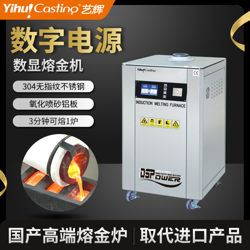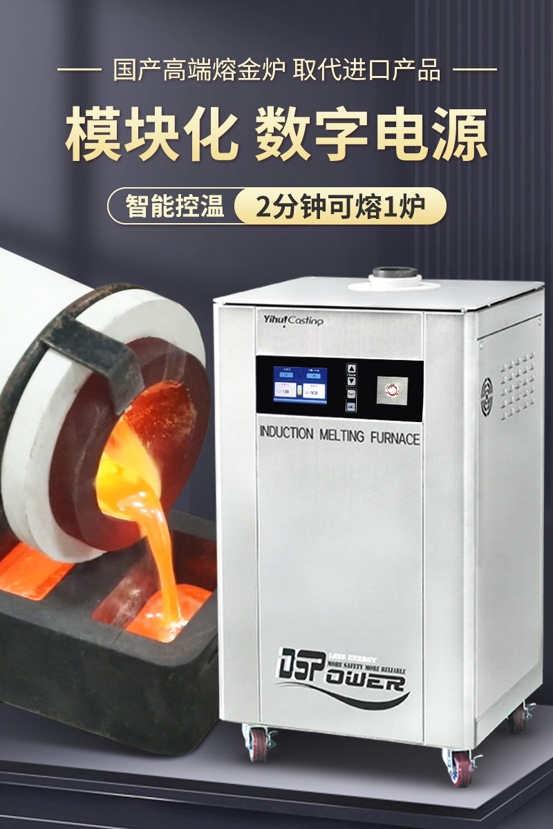 柜式设计、体积小、重量轻,安装操作简单方便,熔化时间约为3-4.5分钟,熔化效率高节电效果好,过载能力强,具有过压、过流、过热、缺水、缺相等多重保护设计,故障自动停机保护。感应线圈不带电安全可靠,进口IGBT模块设计,用料扎实,加热电源稳定耐用,100%全负载,24小时连续工作能力,多重保护设计,故障自动停机保护。