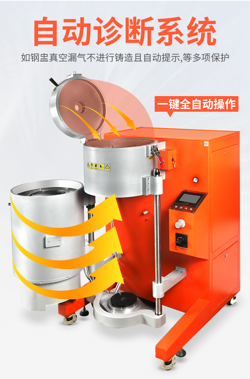DVC-30自动真空加压铸造机是一款程序完全开放式,用户可自由编程满足各种工艺、多功能性的真空加压铸造机,适合高温合金铸造,控温精准±3℃,实测损耗小,铸造件成色高。自动诊断系统,铸造系统可靠性高,如钢盅真空漏气不进行铸造且自动提示,等多项保护。