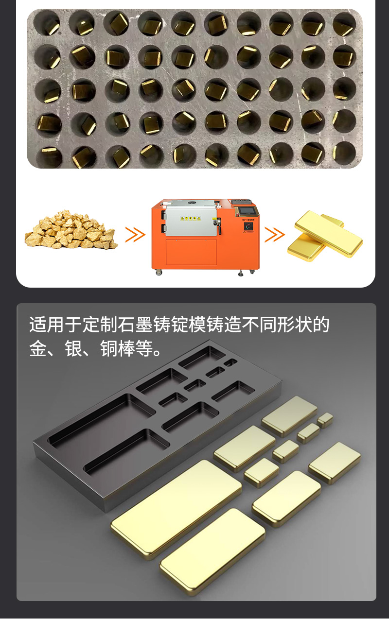 根据需求选择不同规格的石墨油槽,铸锭出不同形状的金属。真空铸锭机铸锭的效果表面光滑,内部无气孔。设备采用触控屏操作,操作流程简单易懂,铸锭过程全自动完成,高效省时。