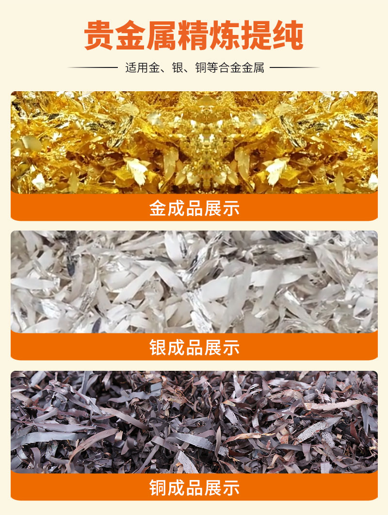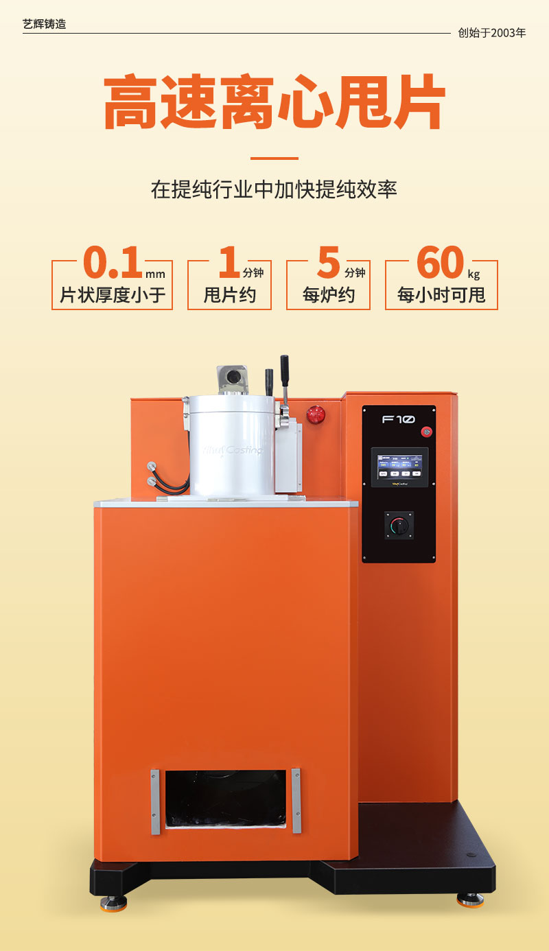 贵金属甩片机通过高速离心甩片,制成厚度均匀的片状金属,片状厚度低于0.1mm,增加金属表面积,在提纯行业中加快提纯效率。