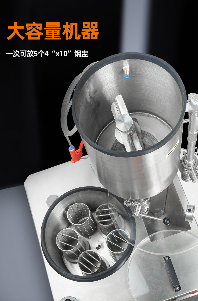 5盅搅粉机最大容量一次可放4"×10"钢盅5个,操作一气呵成,快捷可靠。其性能优越之处在于能够在搅粉时间开始抽真空,使搅拌、注粉、做型整个过程在真空状态一次完成,与一般石膏粉抽真空机比较,省去了搅粉、抽真空、倒粉抽真空等复杂化的操作,还能够减少水珠(金珠、气泡)出现,使产品的光洁度做得更加完美,是高要求精密铸造的必须设备。